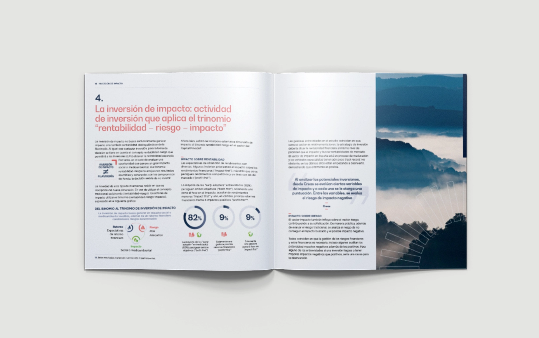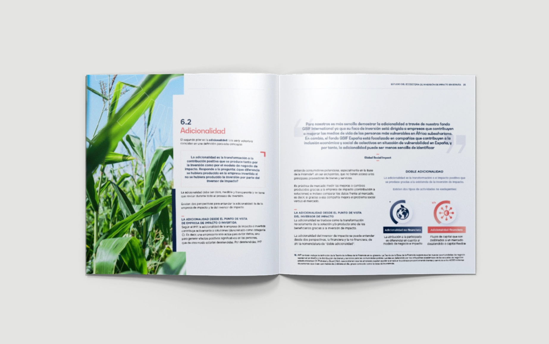 Diseño y maquetación de un informe especializado en inversión de impacto para SpainCap. El reto fue transformar contenido técnico en una publicación clara, atractiva y profesional, alineada con la identidad visual de la marca. A través de una cuidada jerarquía tipográfica, un uso estratégico del color y recursos visuales bien integrados, el resultado comunica con claridad y potencia la lectura.